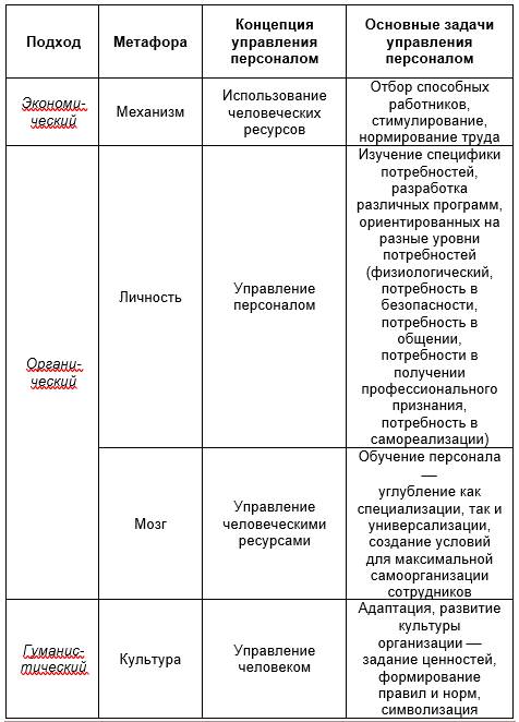 Сводная сравнительная характеристика подходов к управлению персоналом