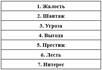 Существует 7 основных техник убеждения. Для того чтобы их понять и правильно отработать для последующего успешного применения. Вам необходимо выполнить 3 упражнения. Для выполнения данных упражнений потребуется не менее 8 человек, выявленные и отработанные техники убеждения записывайте в таблицу.