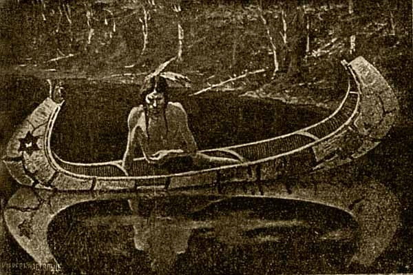 Поздно вечером вернулась Голубое Перо домой. Вся семья собралась за ужином и, когда ужин кончился и отец закурил свою длинную трубку от угольков разложенного около вигвама костра, мать стала рассказывать о том, как она была у купца, и как тот обидел ее: дал меньше, чем следует.