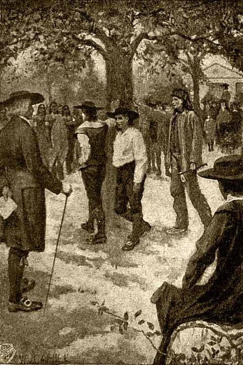 Когда настал день отмерить землю, собрались к белым наши вожди, а вождь белых объявил своим людям, что тот, кто может дальше других пройти за день, тот получит от него много-много денег и, кроме того, 150 десятин земли. Пришли три человека. Все стали около большого ореха, его теперь нет, а на его месте белые, говорят, поставили большой каменный памятник. Как только показалось солнце, начальник белых махнул рукой, и три человека, стоящих около ореха, пошли. Они шли очень-очень быстро, не останавливаясь, не отдыхая. Наши вожди шли за ними и сразу поняли, что белые поступают нечестно. Начальник белых еще раньше тайно приказал, чтобы везде, где будут проходить лесом, срубили деревья, прочистили кусты, чтобы легче было итти. Сами же белые ехали на лошадях. Наши вожди стали говорить, что пора отдохнуть, пора посидеть, покурить трубку, но белые не слушали их и все бежали дальше и дальше. Стали наши вожди уставать, стали говорить, что не могут они дальше итти, надо отдохнуть. Но белые не слушали их, а чтобы наши вожди могли смотреть, что эти три человека не едут, а идут, дали нашим вождям лошадей.