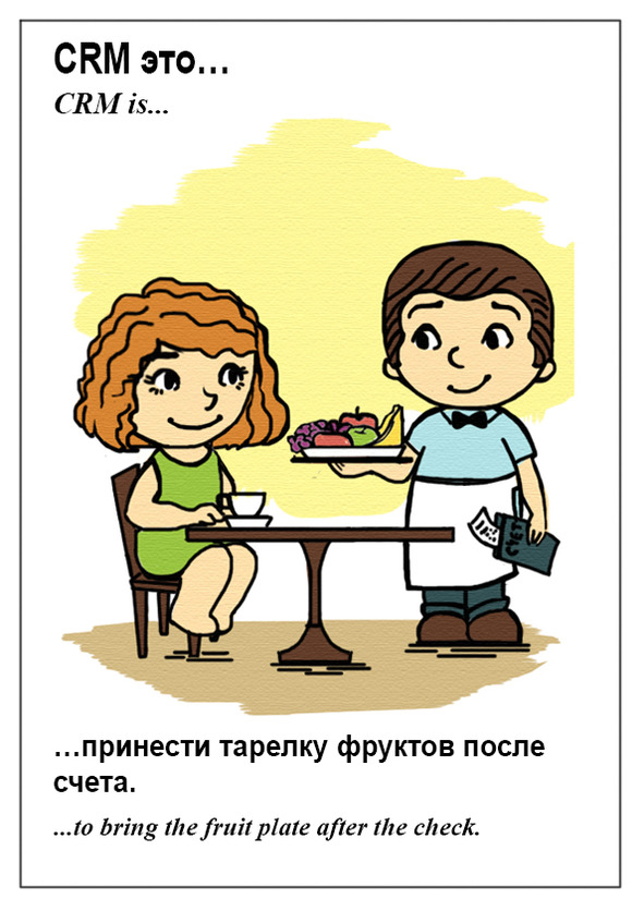 «Это не CRM!» – такова нередко встречающаяся реакция на тот или иной рассказ. Дескать, это просто качество продукта, или просто маркетинг, или еще что-нибудь, но не CRM. Но ведь штука в том, что просто CRM не существует – либо просто CRM никому как таковой не нужен. Но как только качество товара, или маркетинговая кампания, или еще что-либо, что «не-CRM», влияет на ощущение клиента от компании, оно сразу же становится CRM-ом.