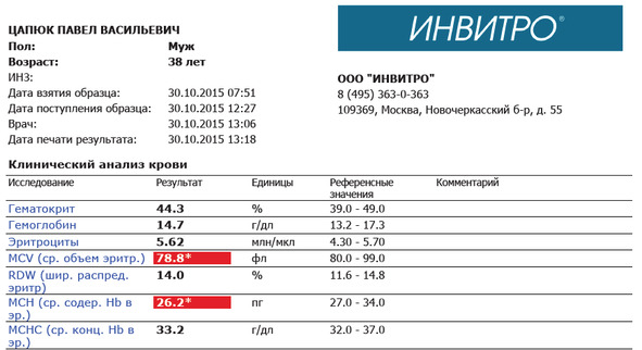 Что до результатов, то их присылают вместе с (а) указанием диапазона допустимых значений и (б) ссылкой на объяснение смысла того или иного параметра. А с некоторых пор добавили еще и (в) предыдущий показатель вместе с (г) датой взятия анализа. То есть из одного документа можно узнать сразу много полезного.