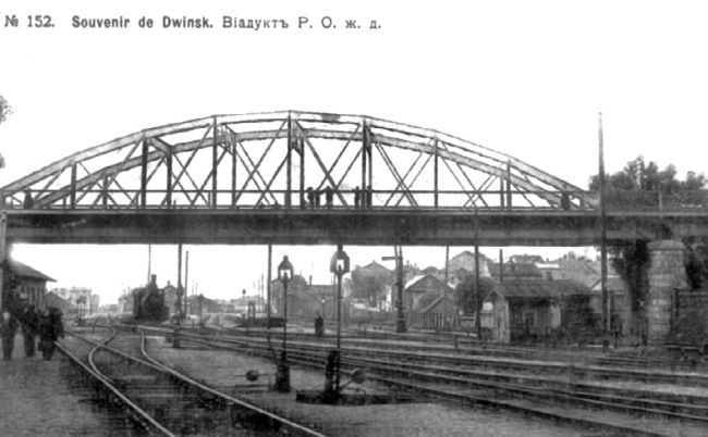 Железнодорожная станция Двинск. Открытка начала XX века. Отсюда начался боевой путь отряда «1-й Боевой поезд» Ревякина.