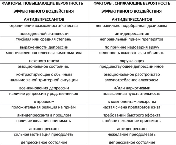 Таб. 2. Факторы, влияющие на эффективность антидепрессантов