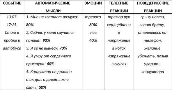 Постарайтесь вспомнить и зафиксировать как можно больше мыслей, которые вы успели подумать в конкретной ситуации. N.B.