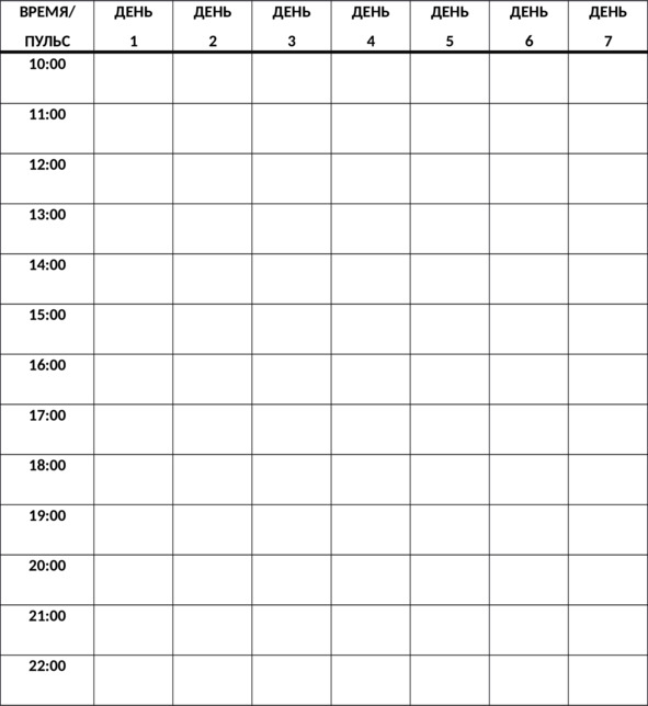 Таб. 15. Упражнение «Дневник сердцебиения»