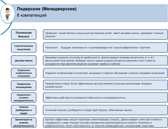 Так как в названии должности КАМа есть слово «менеджер», у такого сотрудника должны быть и лидерские (менеджерские) компетенции. Они – в таблице ниже по тексту.
