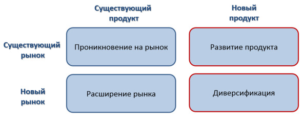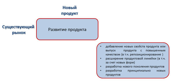 Классический вывод нового продукта на существующий рынок – «развитие продукта».