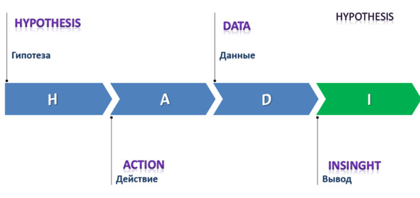 Для того, чтобы избежать подобного рода провала (надеюсь, вы помните, что 42% провалов стартапов по данным Forbes происходит по причине ненужности товара для рынка) и была придумана для стартапов технология опроса потенциальных потребителей под названием HADI или «цикл HADI».