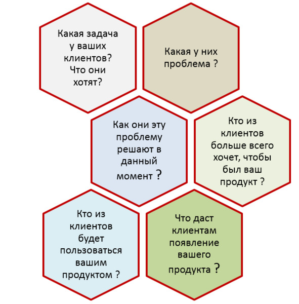Во время такого интервью мы выясняем у потенциального покупателя то, что в нашем продукте для него является ценностным предложением. Основные рубрики вопросов отражены на рисунке: