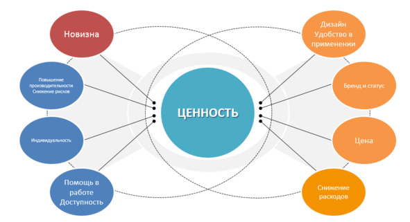 Для того, чтобы потенциальный клиент заинтересовался нашим товаром, предложение компании должно содержать так называемые «ценностные предложения» – то, что в нашем товаре ценно для клиента. Они, как правило, находятся в следующих областях, и нам предстоит их выяснить: