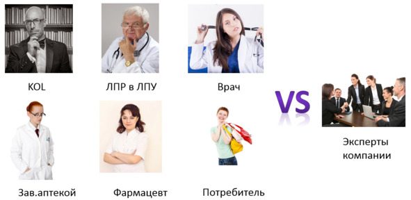 Для рецептурных препаратов нам необходимо будет провести интервью с ключевыми лидерами мнения (KOL), лицами, принимающими решение (ЛПР) о закупках в ЛПУ (если препарат может применяться в стационаре и в рознице), врачами выбранных специальностей, заведующими аптеками.