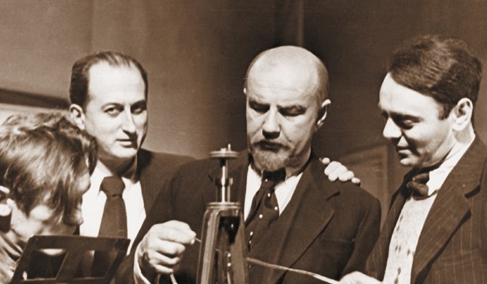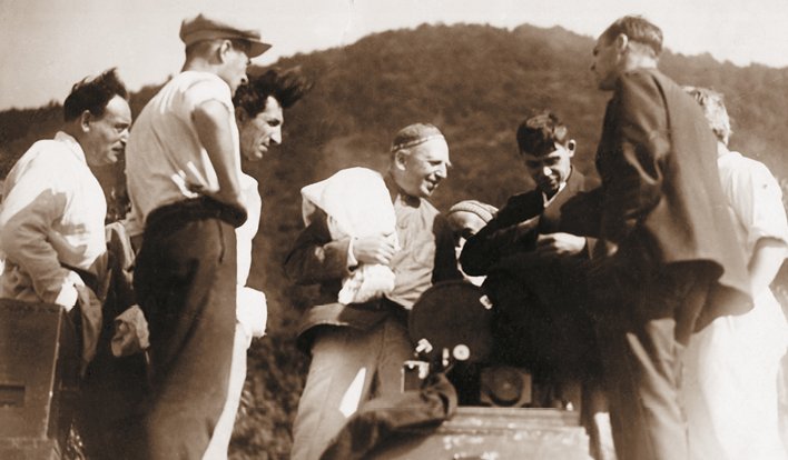 Режиссер Михаил Ромм, оператор Борис Волчек, актер Борис Щукин на съемочной площадке фильма «Ленин в 1918 году»