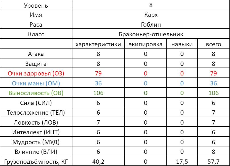 Вторичные характеристики, скорее всего, тоже пострадали, но Карх не очень запомнил сколько у него было каждого параметра до урезания.