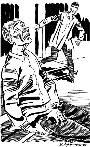 Уже поравнявшись с проемом между первым и средним домом, опер вдруг остановился, повернулся налево и, сев на корточки, стал завязывать шнурок. На его полуботинках не было шнурков, и Николай понял: он что-то увидел. Напарник поднялся и пошел назад, мимо него, Николая. Поравнявшись с ним, он негромко сказал: