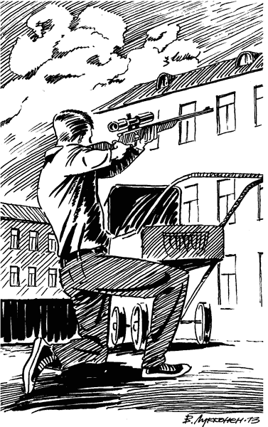 Он понимал, что трем его операм не следует «светиться» перед казармами, и одному поставил задачу: наблюдать за домами со стороны казарм и стараться отследить в окнах или в чердачных проемах появление снайпера, чтобы сразу дать об этом сигнал ему, Гайдамакову. Двоим он приказал подготовить табельное оружие и осмотреть в домах подъезды и чердачные помещения. При обнаружении снайпера задержать его или уничтожить. А сам вытащил из салона уазика детскую коляску с уложенной в ней винтовкой и пошел «гулять с младенцем» по дороге, идущей вдоль тех самых трех домов.