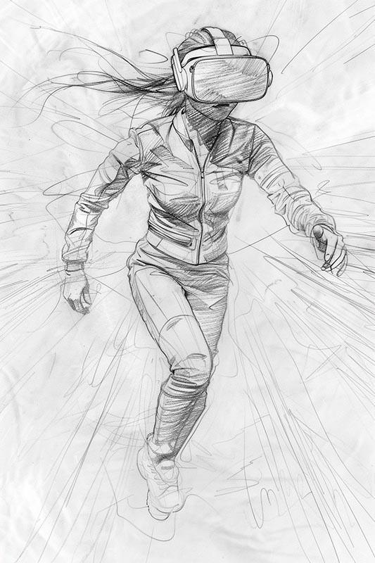 Если смотреть через маску, то на головах у бегунов самые разные причёски, на лицах макияж и какая-то бижутерия, не то вживлённая, не то приклеенная к губам и крыльям носа… Впрочем, что я несу! Нарисованная же! Нарисованная бижутерия, вместе с нарисованными костюмами и причёсками! В нарисованном городе, который, без преувеличения, прекрасен. Разноцветные дома создавали удивительно гармоничный ансамбль, картины граффити органично перетекали с одного здания на другое, яркие надписи, которые я счёл за рекламу, выделялись на общем фоне, но не резали глаз, и даже небо с облаками выглядело ярче и интереснее, чем в реальности. Я был не прав насчёт местных дизайнеров. Они были, и они были хороши – только это были дизайнеры виртуальности.