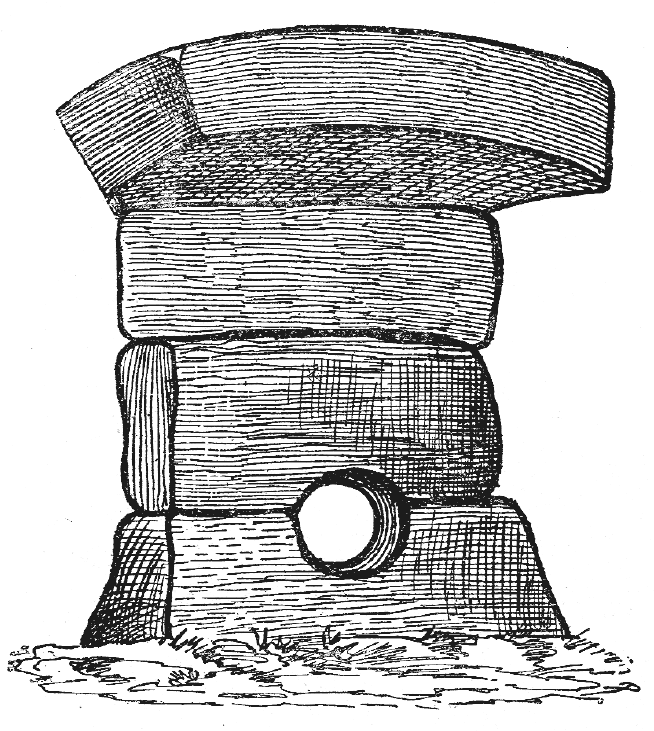 Наличность дольменов на Северном Кавказе указывает уже на более высокую степень развития человечества. Дольмены – это постройки из грандиозных каменных плит с одним маленьким круглым отверстием внизу.
