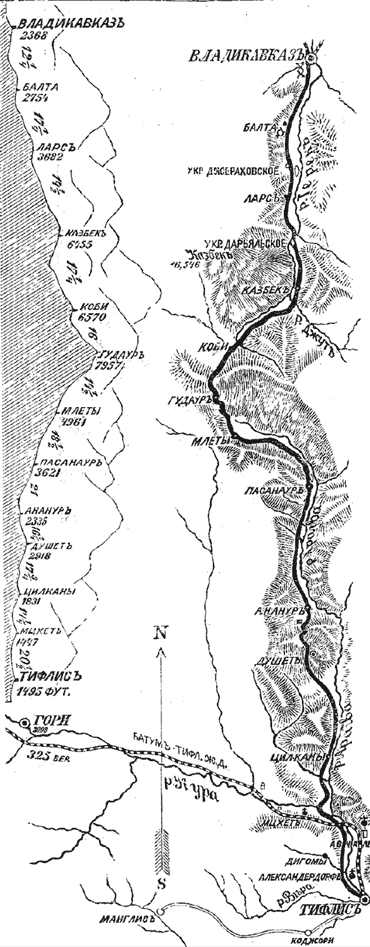 Находящиеся здесь реки довольно значительны. На западе Эльбрус выступает вперед и дает от себя северный значительный отрог, который составляет водораздел для Кубани на запад и для Баксана на восток. По истокам Кубани живут карачаевцы, по Баксану – урусбиевцы. И Карачай, и Урусбий, несмотря на близость, по высоте и отвесности гор являются друг для друга почти непроходимыми. Восточнее этого отрога лежит второй отрог, на котором берет начало река Чегем. Этот отрог на северном склоне покрыт непроходимыми лесами и составляет часть Черных гор, у которых русские вели частые бои с Кабардой. Восточнее отходит отрог Карча, отделяющий чегемцев от Хулама и Безенги. Этот отрог у Ак-Кая соединяется с Передовым хребтом, образуя Черные горы, отделяющие Чегем и Черек в области Нальчика. Хулам и Безенги отделяются от Балкара Дыхтау (16 925 футов), тут же лежит Коштантау (17 096 футов), из которого берет начало Черек.