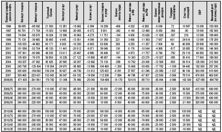 1. Фактические и возможные показатели платежного баланса РФ 1985–2012 годов с учетом стоимости энергоносителей (млн долл.).