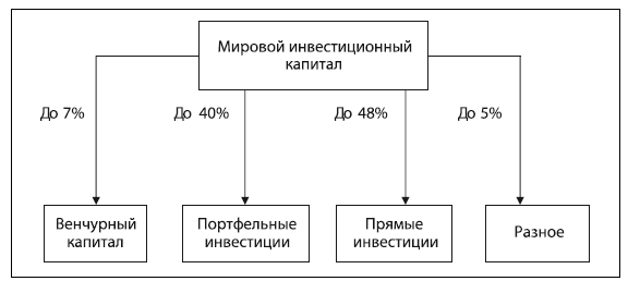 Внешние инвестицииМировой инвестиционный капитал имеет приблизительно следующую структуру (рис. 1).