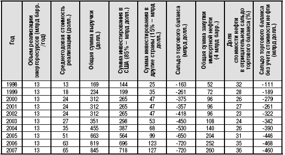 Далее приведены данные, опираясь на которые можно предположить, что совокупный объем предложения на рынке энергоносителей, генерирующий поток денежных средств (его можно рассматривать как обобщенного потенциального инвестора), составляет не менее 40 млн баррелей в сутки. С учетом того, что страны с активным торговым балансом (экспортеры) будут при увеличении поступающей выручки за реализацию сырьевых ресурсов наращивать закупки импорта, общую величину энергоносителей, фигурирующую в дальнейших расчетах, примем за 35 млн баррелей в сутки или 13 млрд баррелей в год. Естественно, необходимо учесть реализацию других сырьевых продуктов (металлы), а также готовые изделия, создающие избыточный приток средств в страну экспортера. Остановимся на цифре 13 млрд баррелей в год. Читатель в дальнейшем увидит, что расчет финансовых поступлений в США может иметь другой алгоритм. Например, при условных среднегодовых ценах на условный набор экспортных продуктов приток средств составляет 360 млрд долл, в год. При постоянных ценах на экспортируемую продукцию общая сумма инвестиций в США будет иметь тенденцию к снижению (все хотят потреблять). К этому следует добавить конкурентную борьбу государств за инвестиции, которая также приведет к сокращению «чистого» потока в США. Из этого следует, что возможное 100-процентное увеличение доходов от экспортной выручки будет направляться в виде инвестиций в США с определенным коэффициентом (0,6–0,8), а в долгосрочном плане – иметь тенденцию к снижению. Статистика подтверждает наше предположение. Для полноты анализа необходимо сопоставить приток капитала в другие страны мира.