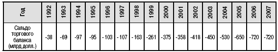 Здесь мы подошли к важному вопросу. Почему необходимы именно внешние заимствования? Огромное отрицательное сальдо торгового баланса либо финансируется внешними инвестициями, либо устраняется. Для устранения отрицательного сальдо торгового баланса существует значительное количество инструментов и механизмов (девальвация национальной валюты, заградительные пошлины, перенесение производства импортной продукции на свою территорию и т. д.). Внимательно посмотрев на общую сумму отрицательного торгового баланса в 2000 году (-375 млрд долл.) и разделив ее на количество проживающих в США граждан, получим, что это ни много ни мало 1262 долл, на человека (весь импорт – 4100 долл, на человека), или 31 % всего импорта. Поскольку отказываться от потребления добровольно никто не собирается, часть импортного потребления будет идти в долг. Не продавать в долг импортеры не могут в принципе, так как производство продукции, идущей на экспорт (от сырья до готовых изделий) создает рабочие места и стимулирует развитие экономики. При положительном платежном балансе страны экспортера создается излишек поступающей валюты, поглощаемый в большей степени государственными структурами (центральный банк, стабилизационный фонд, фонд накоплений и др.), которые в дальнейшем инвестируют их в финансовые инструменты высокоразвитых стран. В том случае, если бы государственные структуры не создавали искусственный спрос на излишек валюты в стране, происходило бы резкое укрепление национальной валюты, со всеми негативными последствиями для экономики. Есть ли альтернатива у стран с излишками экспортной выручки? Особой альтернативы нет, так как в случае неразмещения валюты (в нашем случае долларов) в долгосрочном плане (после реализации части золотовалютных резервов) произойдет «не покрытый» отрицательный торговый баланс, и как следствие – вынужденная девальвация доллара. Девальвация доллара приведет к резкому росту стоимости импортирующихся товаров и автоматически – к снижению спроса. Производители не смогут реализовать продукцию, рабочие не получат зарплаты, государство – налоги, корпорации – прибыли, страна – валюту и т. д. В данной ситуации пример с Россией очень показательный. Мы продаем энергоресурсы, деньги оставляем в США и Европе (проценты тоже не берем). Другими словами, продаем в долг, ибо вариантов по использованию валютных средств не так уж много. Возникает вопрос: стоит ли продавать, если деньги нельзя использовать? Думаю, что стоит, поскольку, с одной стороны, нефть будет дешевле, сохранятся рабочие места, с другой стороны, геополитика (экспансия) с загрузкой смежных предприятий. Сюда также следует отнести возможность сырьевой страны диверсифицировать экспорт и экономику в целом. Неэффективное использование излишков валютных средств со стороны российского правительства – это совершенно другая история.
