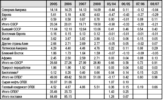 МИРОВЫЕ ПОСТАВКИ НЕФТИ В 2005–2008 ГГ., МБ/Д