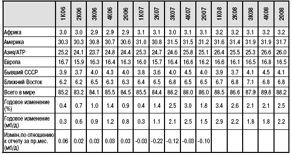 МИРОВОЙ СПРОС НА НЕФТЬ (2006–2008), МБ/Д