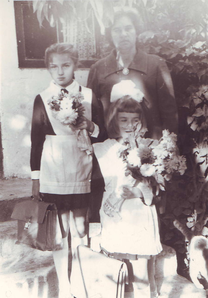 Галина с Наташей и Светой. 1 сентября 1977 г.