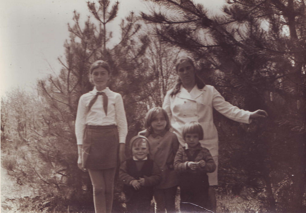 Я с детьми: Ира, Наташа, Света, Павлик. п. Черноморское, 1 мая 1973 г.