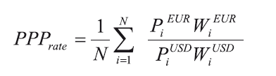 где PiEUR и PiUSD – цены соответственно в евро и в долларах США на товары и услуги в Германии и США, входящие в стандартную корзину промышленного и частного потребления этих стран;