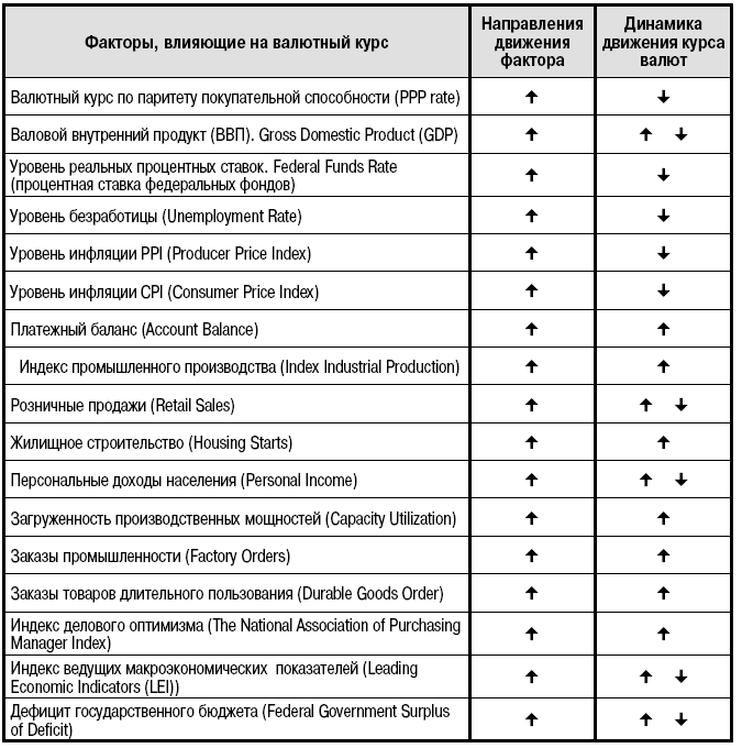 Зависимость направления движения курса валюты от динамики экономических факторов