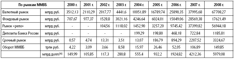 Объемы торгов ценными бумагами на Фондовой бирже ММВБ