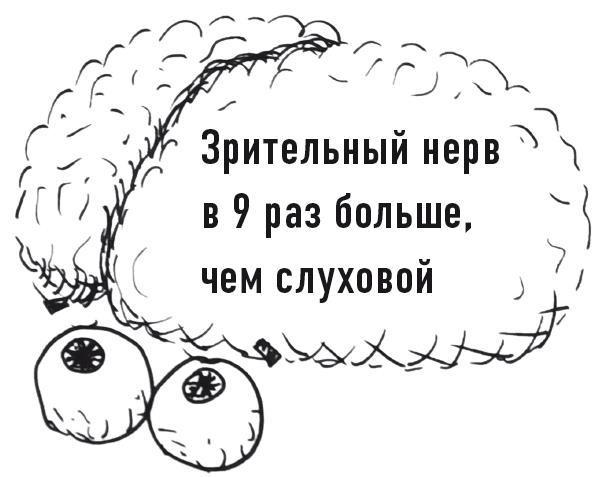 Ученые, изучающие мозг человека, доказали, что мы перерабатываем в 10 раз больше визуальной информации, чем звуковой.