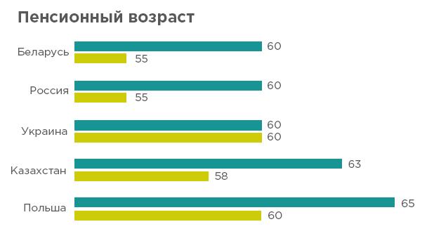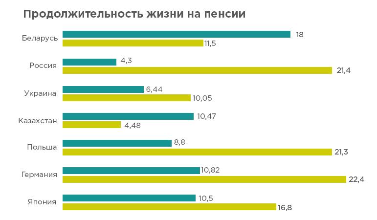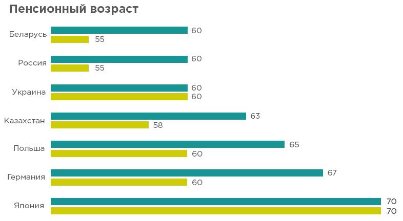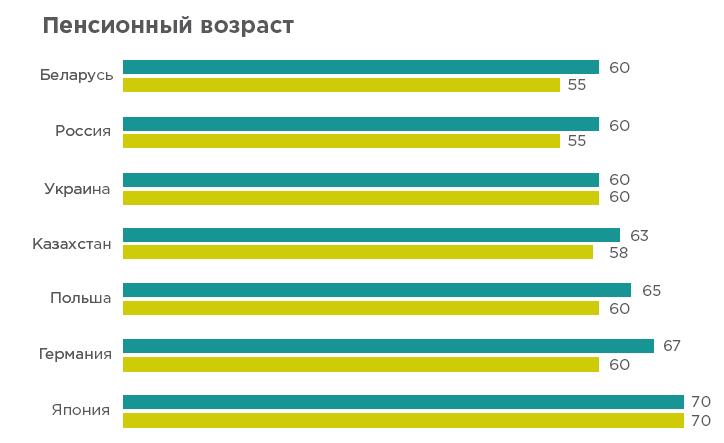 Очевидный вывод: пенсионный возраст в РФ и Беларуси примерно такой же, как в других странах. Но на г