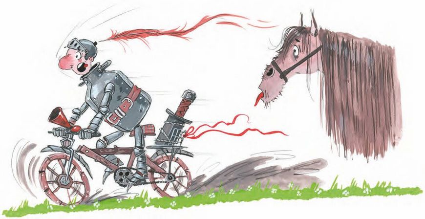 Ругаясь на чём свет стоит, сэр Бидон отправился в сарай за велосипедом. Рыцарь любил кататься на велике и даже как-то раз стал чемпионом королевства по велогонкам. Ну, по правде сказать, он один в этих гонках и участвовал.