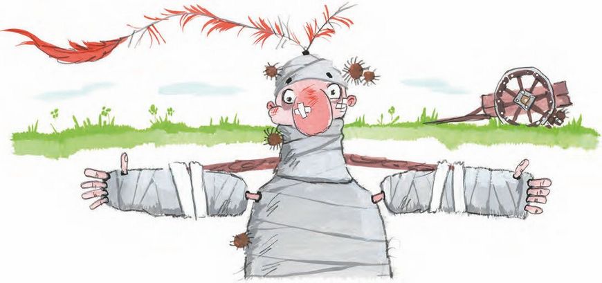 …Очнулся сэр Бидон в больнице, весь перебинтованный и в пластырях. В больнице соседнего королевства, само собой, – ведь его королевство разорил дракон. Оказалось, на рыцаря налетела огромная телега с кактусами. Видите, как опасно устраиваться на ночлег прямо на краю дороги!