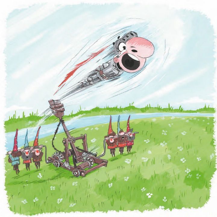 – Стой! Стой! Не жми! – истошно заорал Крендель, но было поздно. С дружным «Навались!» гномы повисли на рычаге. Шестерёнки завертелись с бешеной скоростью. Сэр Бидон зажмурился.