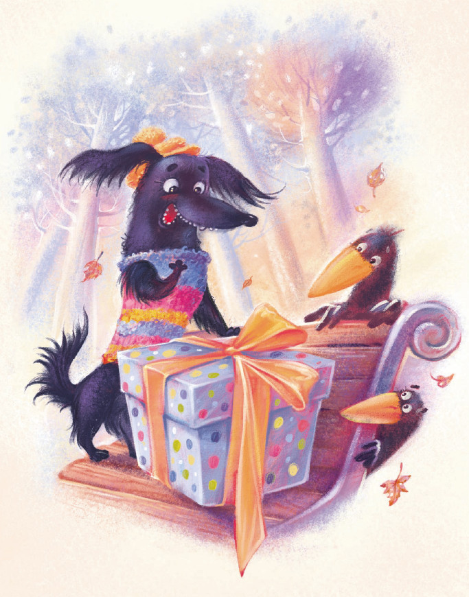 Однажды Клякса бродила по парку. Забралась в чью-то пустую норку, покопалась в куче сухих листьев, поругалась с воронами, и вдруг… Вдруг она увидела на скамейке подарочную коробку – разноцветную, с бантом на крышке.