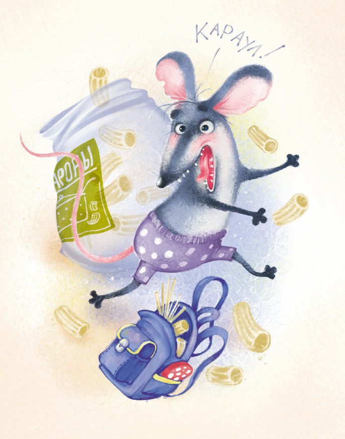 – Вот тебе, противная тявкалка! Пе-пе-пе! – и убежала в норку, прихватив рюкзак с макаронами.
