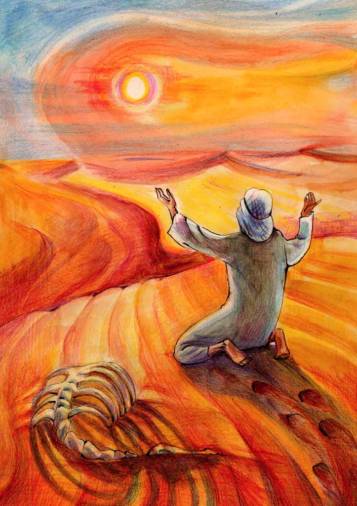 Немного напившись, я похоронил друзей и стал рыть колодец, сразу обкладывая его камнями, которые нашёл неподалёку. К исходу солнца дела мои немного продвинулись, вода стала скапливаться хоть немного, но быстрее, и её количество позволило мне напоить единственного выжившего верблюда.