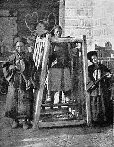 Конечно, вся эта кутерьма сопровождалась вымогательствами и жестокостями, Китаю свойственными. Если подозреваемый был не в состоянии откупиться, то в назидание другим, его помещали в клетку, стоящую на кладке из тонких кирпичей, с головой, просунутой в отверстие меж двух досок – знаменитая пытка kang (печь-лежанка). Каждый день убиралось по кирпичу, так что тело страдальца постепенно растягивалось, повисало на шее, и шея ломалась. Затем голова вывешивалась на городской стене. Будет знать, как курить опиум!