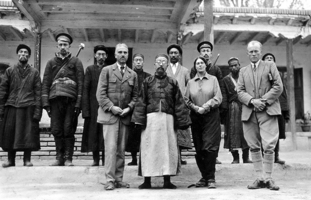 Амбань в Яркенде. Рядом с ним слева направо: Ph.C. Виссер, амбань, Дженни Виссер-Хоофт, Дж. Силлем. (Ph.C. Visser, 1930)[11]