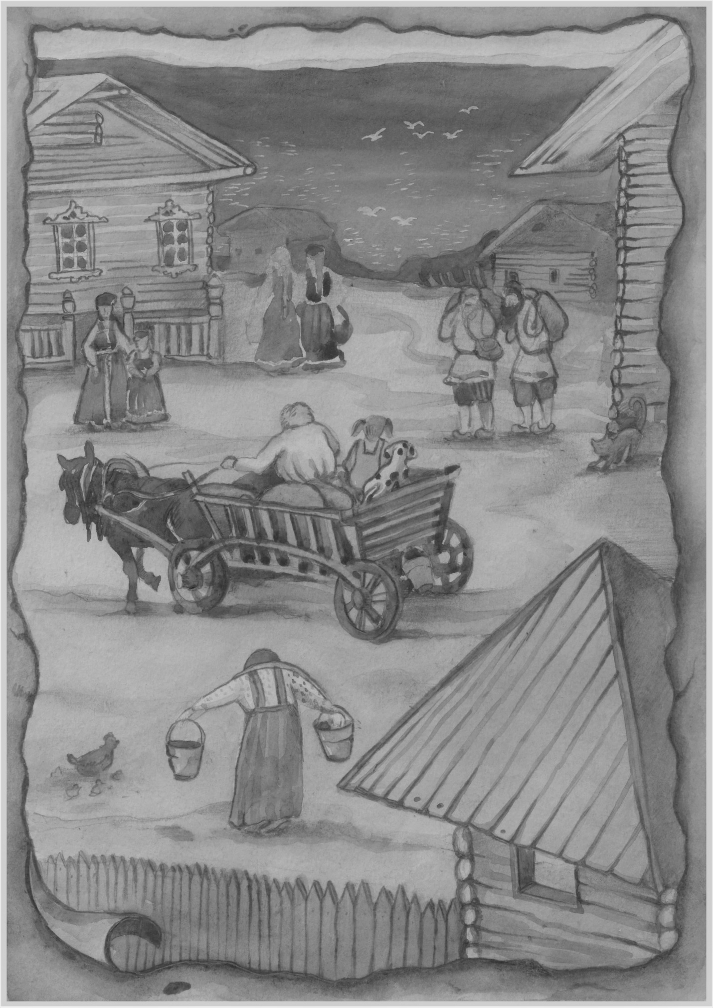 – Но, пошла! – Авдей слегка тронул поводьями бока коня, телега заскрипела и тронулась с места.