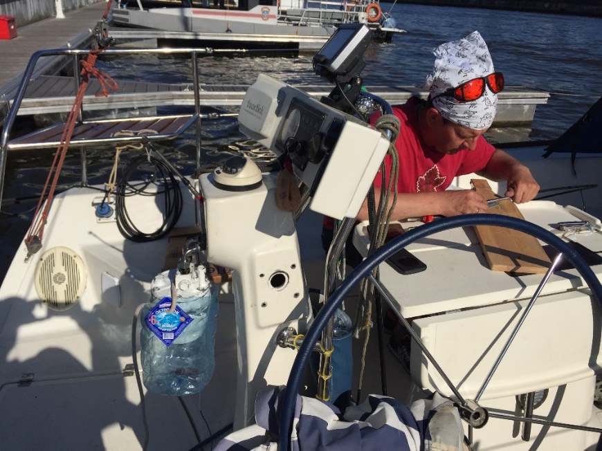 В течение пары часов я, Лёша и Вера, из деталей не очень высокого качества, купленных нами в ближайшем строительном магазине, и оцененных инструктором как «говно какое-то», восстановили работоспособность яхты. Как всё-таки велика и неистребима вера русского человека (русский – в данном случае не национальность, а менталитет) в чудо. Все курсанты (нас было трое) внесли свой добровольный и посильный вклад в реализацию этого чудесного восстановления.