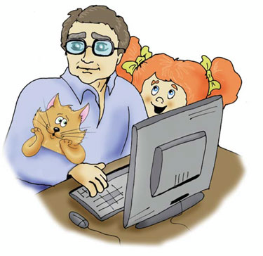 Оля наблюдает за папой: целый час он сидит за столом перед компьютером очень мрачный – наверное, никак не придумает, что ему написать.