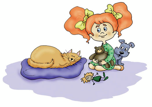 Как-то Оля переставила все свои игрушки и сказала своим подопечным Жучке и Мурлыке: