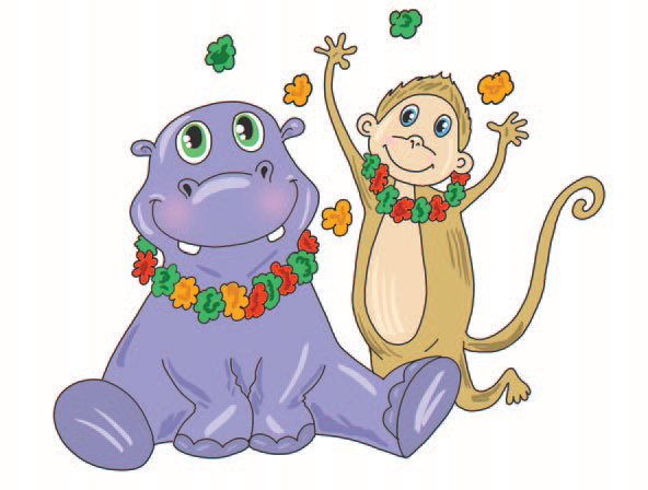 Бегемотик и Обезьянка дружили с детства. Поутру они встречались и шли гулять по Африке. Обезьянка, нарвав бананов и ананасов, угощала Бегемотика, а затем, связывая из разных цветов красивые веночки, надевала их себе и Бегемотику на головы. Наигравшись, Обезьянка прыгала на спину Бегемотику, и они отправлялись домой: он к озеру, а она к дереву неподалеку. По пути, пока они шли, все звери, завидев их, насмехались: