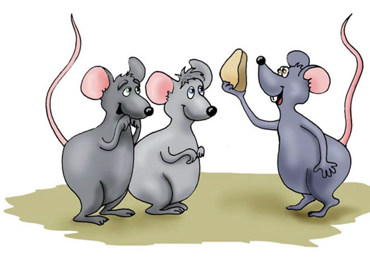 Молчат Жучка с Мурлыкой, не знают, что ответить. И тут появилась знакомая мышка и радостно запищала: